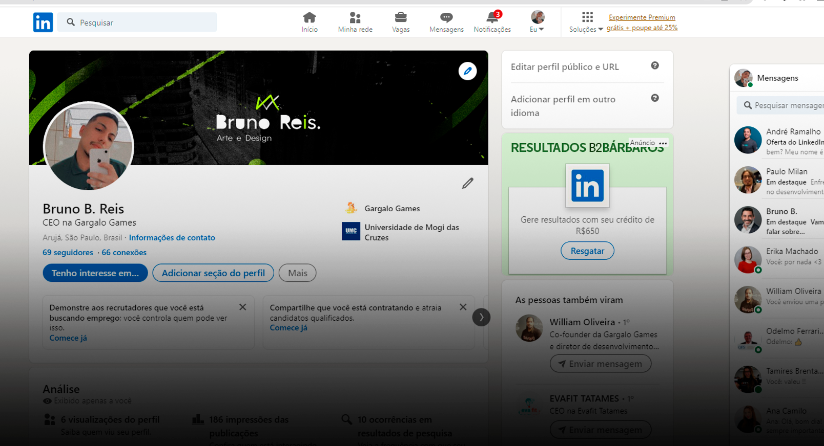 Trabalhei um tempo como analista de marketing voltado para o E-commerce e marketing places, me destaquei na área, mas minha veia artística ainda era mais forte.